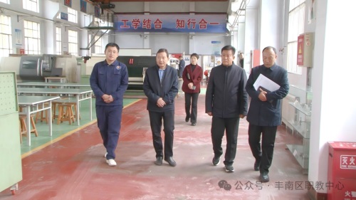 座谈结束后,在杜亦国书记、韩振天校长的陪同下,唐山科技职业技术学院领导一行实地考察了丰南职教中心京东数字化产业学院、机器人产业学院以及各专业实训场地。考察过程中,郝志华院长一行认真查看了实训设施设备配置情况,详细了解了实训教学组织、学生技能训练及产教融合项目开展等情况,对学校完善的实训体系、鲜明的产业对接特色及良好的育人氛围给予了高度评价。